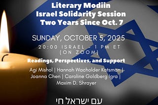 Plus, an upcoming Literary Modiin event and a brief update from Day 621 & Day 6