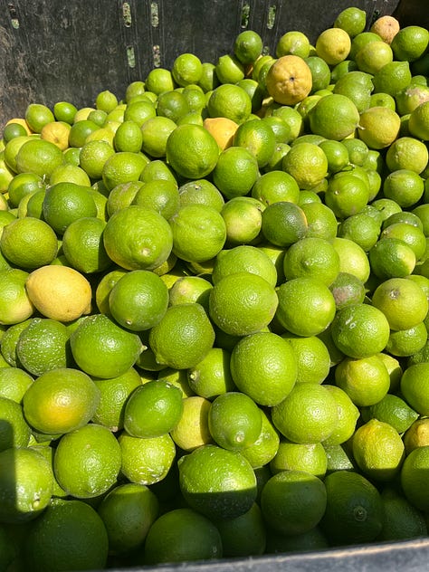 This state of mind is called Learned Helplessness in neuroscience, but the good news is that there are things we can do to combat it, with recommendations on resilience now backed by scientific studies. “Actively building experiences of control” in which we are volunteering or doing some good for someone “act like a ‘vaccine’ for the brain.” I could go on and on, quoting his entire column (I encourage you to read in its entirety), but I’ll just say that this 100% bears out my experience since Oct 7th. Why do I rise at the ungodly hour of 4:55 am or 5:30 am or whatever it is each week to go (in my case) help farmers with their grape/lime/orange/tomato/etc., etc.? Because my brain needs a vaccine to protect against the horrors.